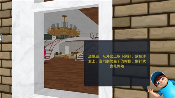 进入里面,点击手按按钮来收集别针。