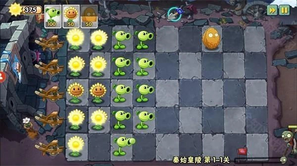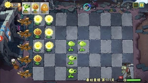 2、能够在最后一排种植向日葵,就能产生大量的阳光,僵尸靠近后,记得在前面种植豌豆射手。