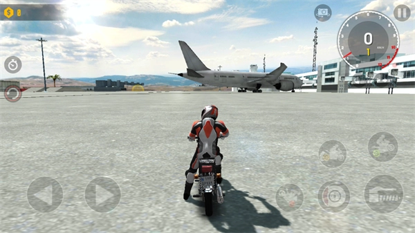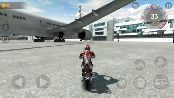 进入游戏后,左侧用于操控摩托车的方向,右侧则负责控制前进以及其他操作。