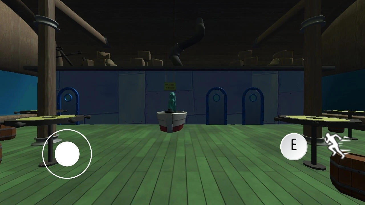 游戏采用第一人称视角,玩家需要在光线昏暗的蟹堡王里进行探索,通过收集四处散落的线索来拼凑出事件的真相:比如翻找厨房的抽屉以获取钥匙、收银机的密码,留意观察墙上隐藏的符号,一步步揭开灾变发生的源头。在这个过程中,玩家要时刻小心变异角色的追击——海绵宝宝可能突然从汉堡堆里窜出来,派大星也会从通风管道里爬出来发动突袭,玩家需要借助环境里的道具来争取逃生的时间。