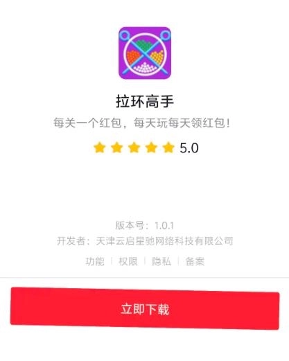 拉环高戏是天津云启星驰网络科技有限公司近期全新推出的休闲趣味创新拉环益智闯关手机小游戏。玩家只需找准时机,轻轻拉开拉环,操作简便,极易上手。游戏内小球色彩丰富,倾泻而下的视觉效果绚丽夺目,能为玩家带来沉浸式的视觉享受。感兴趣的话,不妨叫上小伙伴们一起安装拉环高戏,组队赚取零花钱吧!