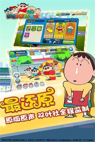 《蜡笔小新历险记》是获得日本双叶社正版授权的休闲益智RPG手机游戏,融合了卡牌元素、物理抛射与角色养成玩法。游戏以蜡笔小新动漫为背景,带领玩家重温原版动画中的精彩情节,带来最纯粹的蜡笔小新体验。