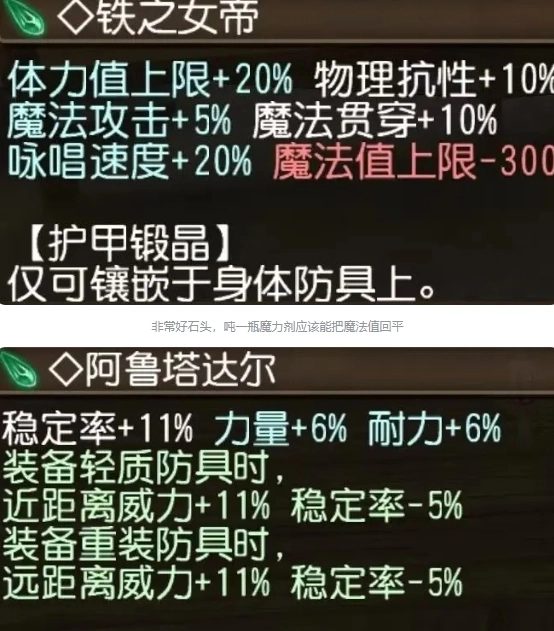 魔导的攻击力以及为挖掘潜力所带来的负面效果都无关紧要,不需要往上面镶嵌任何石头,也不必去做镶嵌石头的操作。
