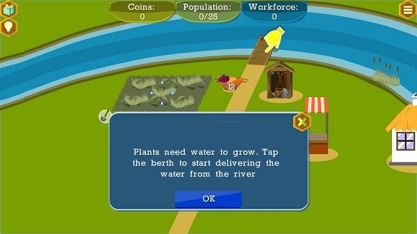 游戏一开始,系统会简单介绍玩法:种植农作物,出售赚取收益,然后逐步发展自己的工业和城市。
