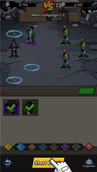 1、点击主页的【开始战斗】按钮后,把已拥有的角色安排上阵。