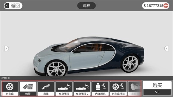 每一项调校都需要消耗金币,只有点击购买才可以安装这些配件。