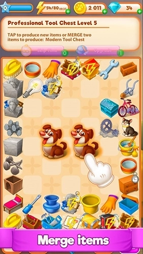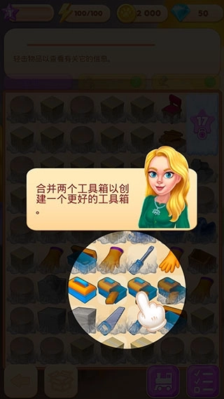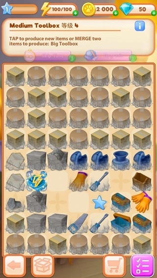 2、只需要拖动两个相同的物品即可进行合并,合并后会出现一个更高级的物品。