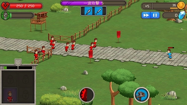 塔防模式:在这个模式里面,我们只能防御敌人的进攻而不能对敌人进行追击,只要我们把敌方士兵全部消灭了那就算胜利了。但如果我们的城墙被敌方优先攻破,那么这一场战争就失败了。每赢得一场战争,我们都能够获得大量金币,所以为了能有效抵御对手进攻,我们可以对以下三个方面进行升级:墙面、弓箭手和塔楼。