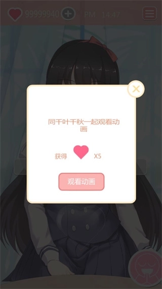 3、另外点击+号按钮,和千叶千秋一起观看动画获得爱心。