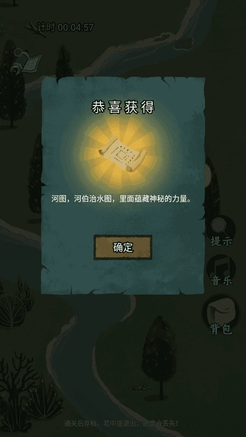 获得河图后,便能着手治理水灾,完成各项相关任务以成功平息水患,不过途中仍会有重重考验等待着你。要是碰到难题,可点击右下角的提示来推进游戏进程。
