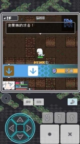1、点击主页菜单的迷宫就可以去探险了。前期最好把所有迷宫的掉落物都捡起来,找到剑啊盾啊手套等装备一定要穿戴好。戴上这些装备需要点击上方菜单,进入道具处选择。装备剑之后就能和魔物战斗,对着魔物按下选择键或者方向键就能看到用红色显示的攻击范围,接着再按选择键战斗就会开始。战斗方式与节奏游戏类似,瞄准时机按下相应按键即可攻击(注意选择键是圈),分数越接近100攻击力越强。