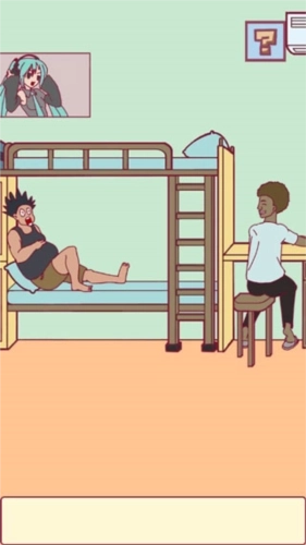 1、这款游戏也是卡鲁秋工作室的第二部恶搞休闲解谜类游戏,本游戏是以学生的学校宿舍为主题背景,在游戏中玩家扮演一个入校新生,为了更快融入学校并和室友和平相处需要解开各种谜题从而化解困难阻碍。