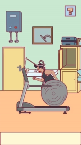 首先在右侧垃圾桶中找到一张纸,点击跑步机让其运动,在用纸临摹小伙想象中的美女,然后在小伙右侧上方的箱子中获得一个三脚架,并让其架在跑步机中,最后将图片固定在三脚架中点击跑步机就可以燃烧卡路里了。