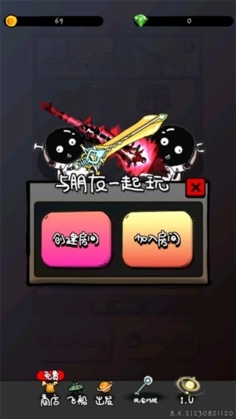 3、和朋友玩的话需要创建房间或者是加入到你好友的房间。