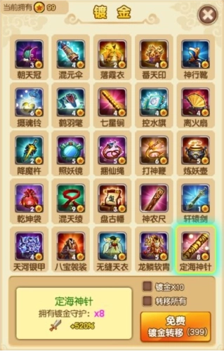 但这事儿并不简单,毕竟转移镀金的过程是随机的。你选一件带镀金的装备进行转移操作,镀金会从这件装备上脱离飞走,之后它具体会落到哪件装备上可就说不准了。