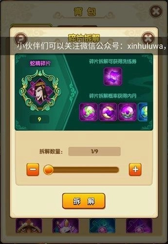 这个内丹该如何获取呢?只要各位玩家在《新葫芦娃》里玩得稍久一些,手里应该就攒了不少妖宠碎片。把这些碎片(万能碎片也包含在内)分解掉,就能得到内丹和洗练券啦。内丹有三种类型,分别是金丹、灵丹和元丹:金丹对应的是闪避、暴击与反击属性;灵丹对应的是命中、抗暴和重击属性;而元丹则能提供三种随机属性。每张卡牌都可以各镶嵌一枚这三种内丹,大家可以根据自己的培养方向,给喜欢的卡牌搭配出最强的内丹组合!和妖宠以及妖宠碎片一样,内丹和洗练券也有品质之分,分为蓝色、紫色和橙色三种。不同品质的碎片分解后得到的物品是不一样的,分解前都会有提示,具体情况还请以游戏内显示为准哦~