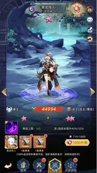 [升星]升星可以显著增强勇者的各项属性,而且升星是提升勇者技能等级的唯一方式;勇者升星后,其外观造型也会变得更加华丽夺目哦~