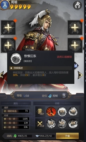 当武将升级到特定等级的时候,再次升级就可以提升等级和提升某一技能等级。解锁和提升技能等级有着重要的战略意义,主公可以有计划地分配一下升级材料的运用。