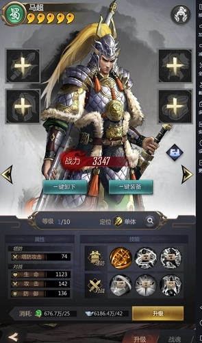 以马超为例,想要提升马超的等级,点击下方“升级”按钮即可,如果升级材料足够的话,长按“升级”按钮可以快速升级噢。