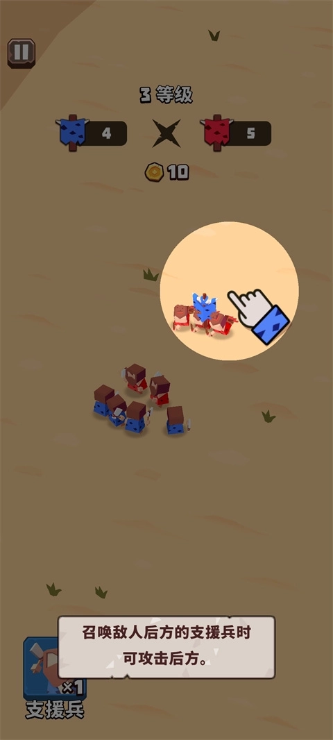 4、关卡左下角还有一个支援兵,你可以将支援兵召唤到敌人后方来进行攻击;
