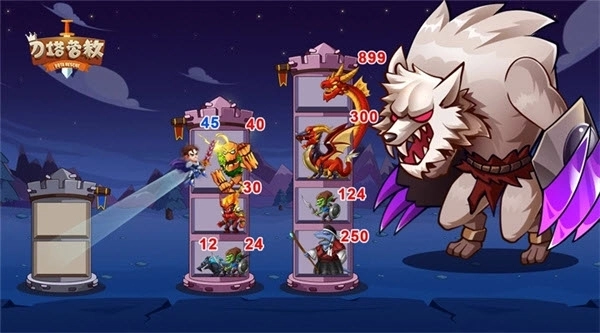这是一款流行的战略游戏,有丰富的高塔等着你战斗,不断爬塔来对抗BOSS,与强大的龙战斗,最终拯救公主,每一层塔的BOSS属性都不同,合理分配你的战力,来突破它。