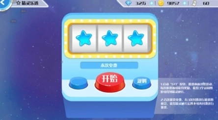 精灵乐透:点击开始按钮机器开始转动,如果停下来时三个图案一致,则可以获得精灵碎片。