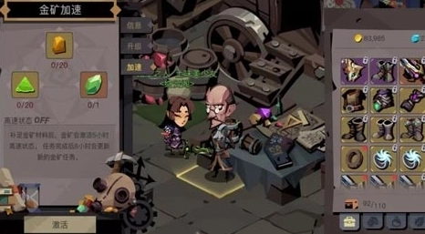 7、如果囊中羞涩没钱升级,却又缺金币急用,金矿加速了解一下!提交一定量的材料(符文工坊是装备)就可以激活金矿的高速状态啦。低级材料没地方花,先怼进金矿再说!