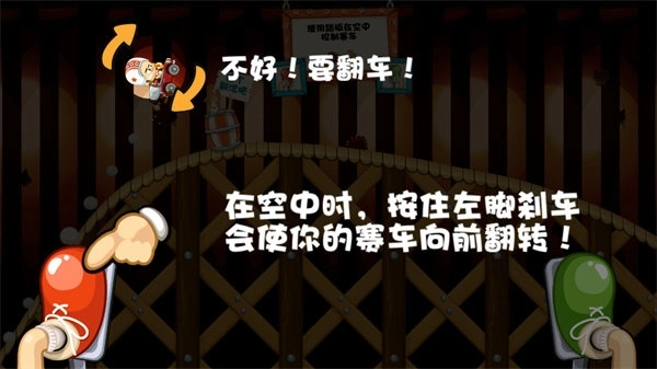 6、当车在空中时,点击绿色脚踏板,车会向后翻转;