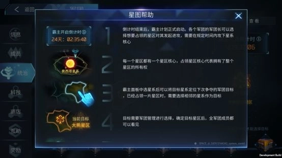 在霸主计划开启前可以在军团界面自由选择进攻星系,同时将所有星系分为若干星区,这方面的内容,在军团内的统治界面有详细的说明,届时可以自行打开查看哦~