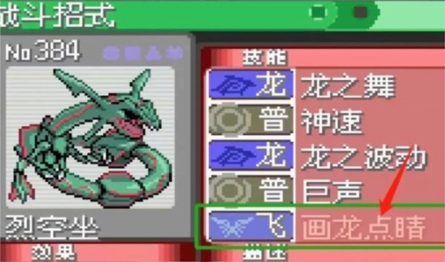 4、最后让裂空座使用画龙点睛,就能mega进化成超级裂空座。
