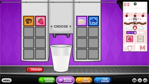 5、你会把每位顾客的订单记在订购单。你需要一杯冰淇淋和冷冻Sundae的原料。前往制作台开始制作…