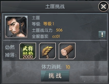 土匪挑战:打野可以获得大量的资源和武将经验。