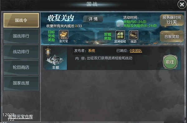 国战不是一个人的战斗,他需要与本国的玩家一起并肩战斗,所以小编列下了左右效率的国战模式。