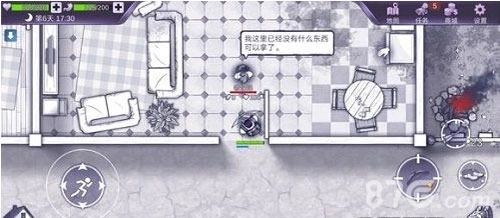 6、左边轮盘可以控制人物角色移动,右边可以长按人物进行奔跑,还可以使用枪械;