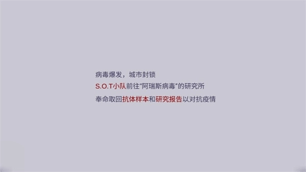 4、这里会交代游戏剧情,病毒爆友,城市封锁S.O.T小队前往“阿瑞斯病毒"的研究所奉命取回抗体样本和研究报告以对抗疫情;