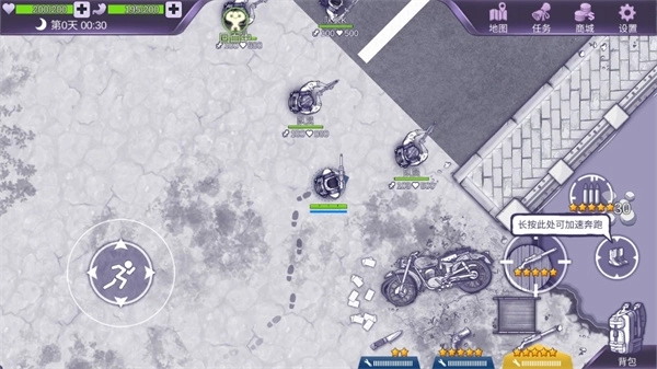 游戏采用俯视视角,副本无迷雾,一切地形与怪物尽收眼底,是迎难而上,还是避其锋芒都由您来决定;双***操作,可一边移动一边射击,武器蓄力时,亦能利用走位躲掉怪物和丧尸的攻击。