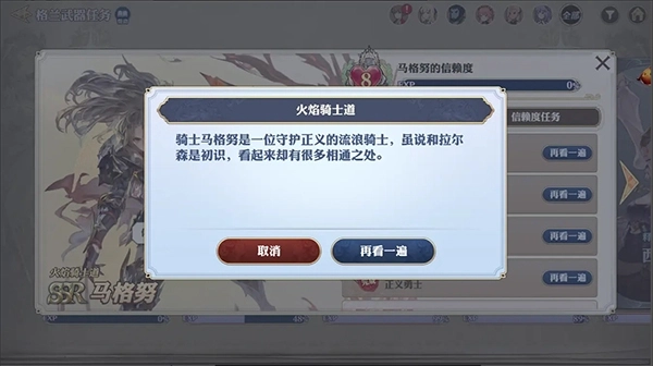 3、根据达成的好感度可开放格兰武器任务,通关1次的格兰武器任务无论何时都可以再次查看。