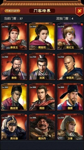 5、丹药,卷轴的使用:要有针对性的使用,丹药卷轴都给高资质的门客使用,全部砸在他们身上,势力的涨幅才快(例如:武力丹,随机丹都可以全部培养高长恭,这样着重培养一个的话属性上升的快。)