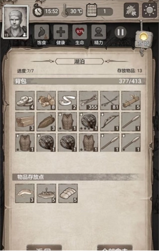 掠夺者营地很肥务必推掉,时间很充裕可以一天推一点。本关结关需要活18天,打完所有点之后每天就是找威利换石片,然后隔几天走一遍资源点。如果觉得食物压力大,请在推完营地后给二号人物断粮