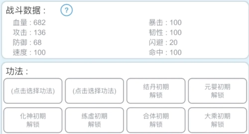 5、功法:每个大境界会有对应的功法品质,每个大境界都需要更换功法,在灵根五行合一前是什么属性灵根就用什么属性功法