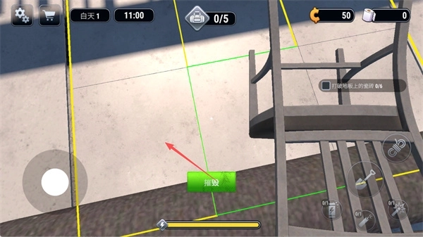 2、需先搬开椅子、掀开地毯,再点击破坏地砖,方可开启挖掘通道。