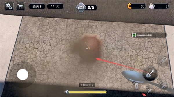 3、点击右侧的铲形按钮,持续挖掘地面,直到打通逃生路径为止。