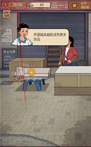 5、有了货架后就可以卖东西了,声望值越高可以卖的东西就越多。