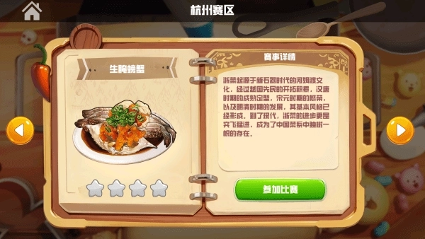 7、赛事挑战多元:多种比赛与挑战模式,带来差异化烹饪任务,体验不同乐趣。