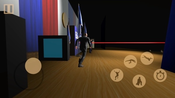 1、处于走廊场景时,要提前留意行进路径上的障碍物与红色激光陷阱,规划好移动路线,借助左侧虚拟摇杆操控角色移动,保持警觉并稳步推进。