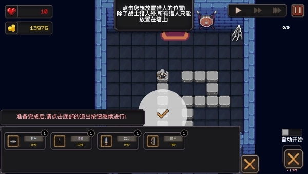 5、你需要在怪物的路径上摆上墙,然后猎人只能在墙上摆放,白色的圈就是攻击范围。