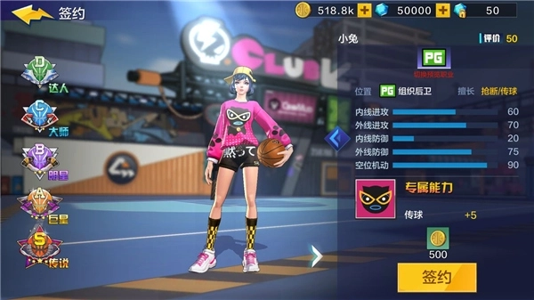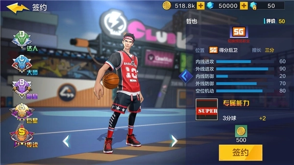 篮球手可以选择自己喜欢的技能,收集材料升级技能等级,升高技能的等级,可获得强力的效果与帅气的动画!