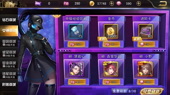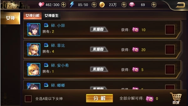 或者可以把女神多余的碎片分解,获得一定的女神兑换券,去女神商城购买自己想要的女神碎片。这对不敢培育女神的玩家非常的友好,不用怕浪费资源,尽管去培养教育她!