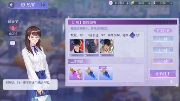 (2)通过【城市打工】获取。点击界面的【出门】按钮进入雾城,每个建筑都对应一个居民,点击任一建筑,可进入详情界面,本次以图书馆为例,提示你选择观察类型的影迹进行打工,打工结束后可获得【皓月链】等影迹升级材料奖励;(注:不同地点的打工奖励不同)