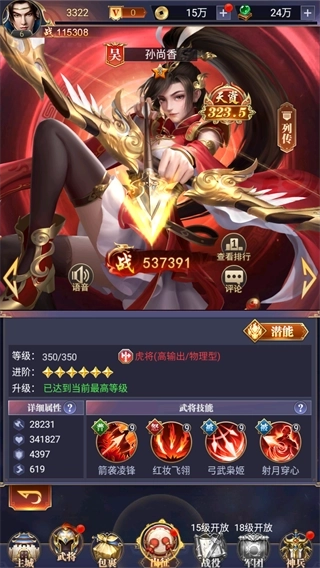所有武将分为虎将、策士、方士和铁卫,不同职业各司其职。从中选择你想要的阵营武将,分配武将装备,根据技能和定位合理布置作战阵型,都是获胜的关键。